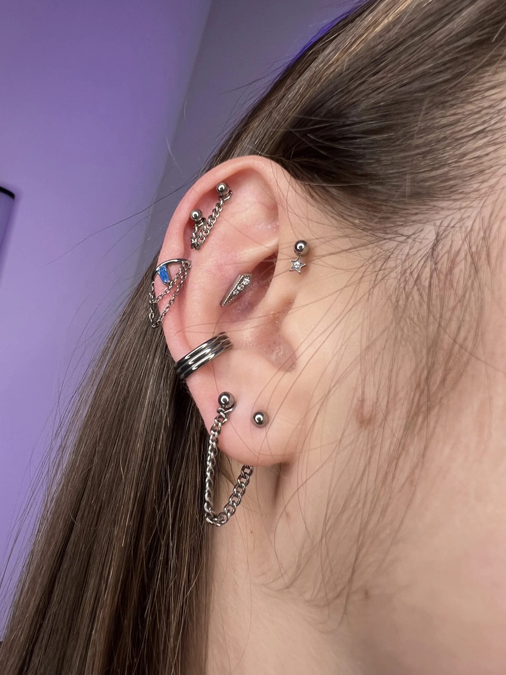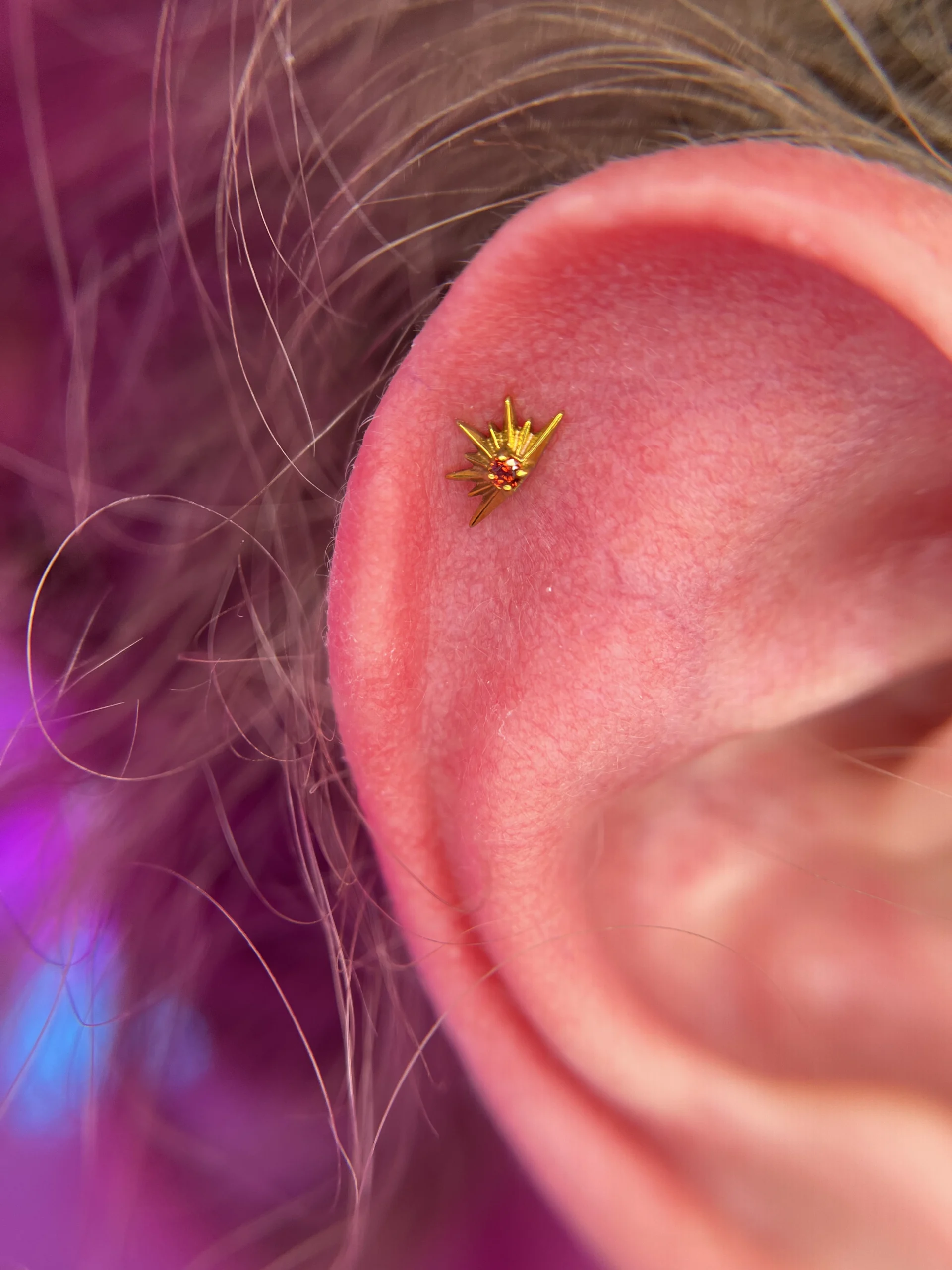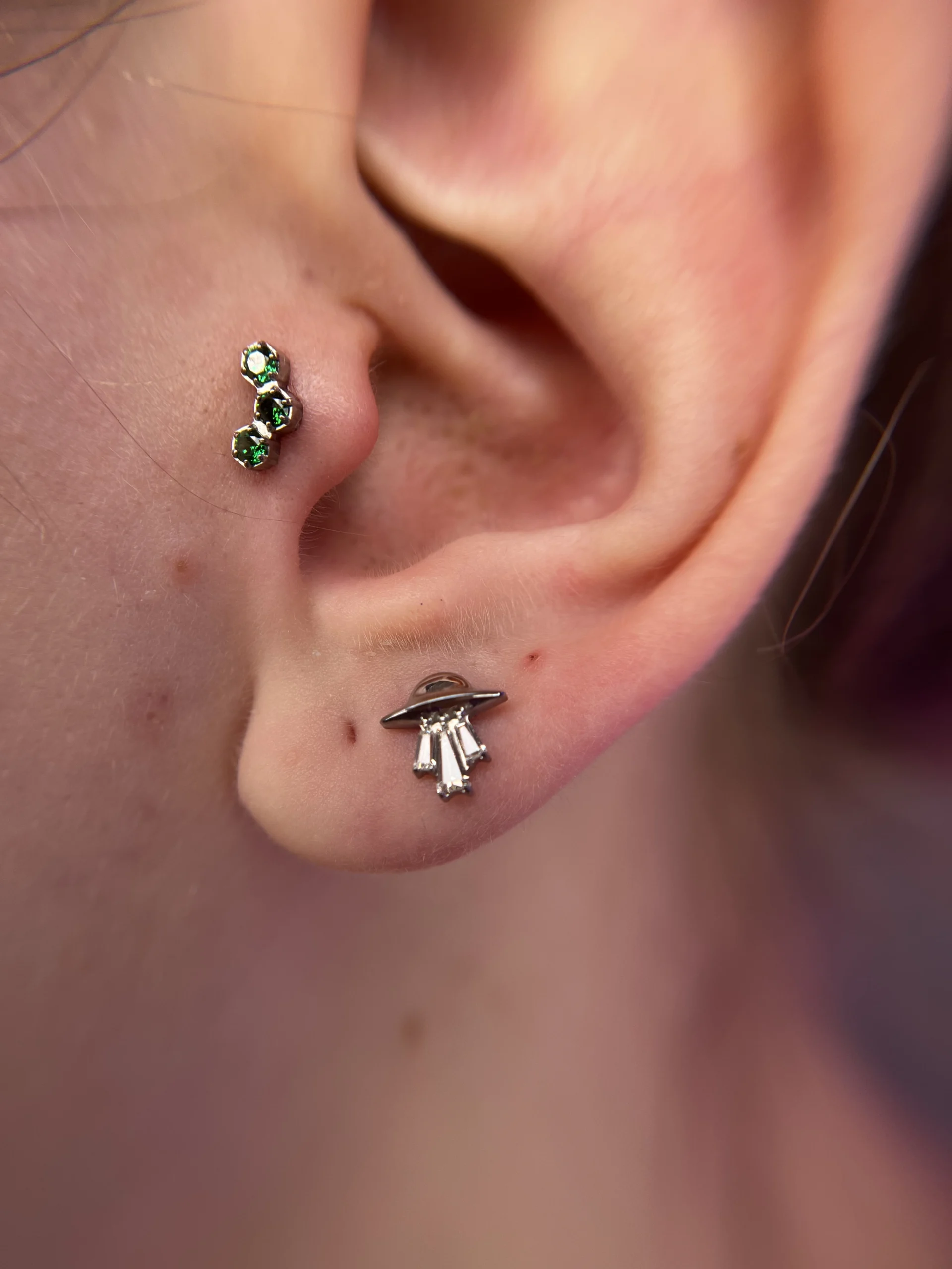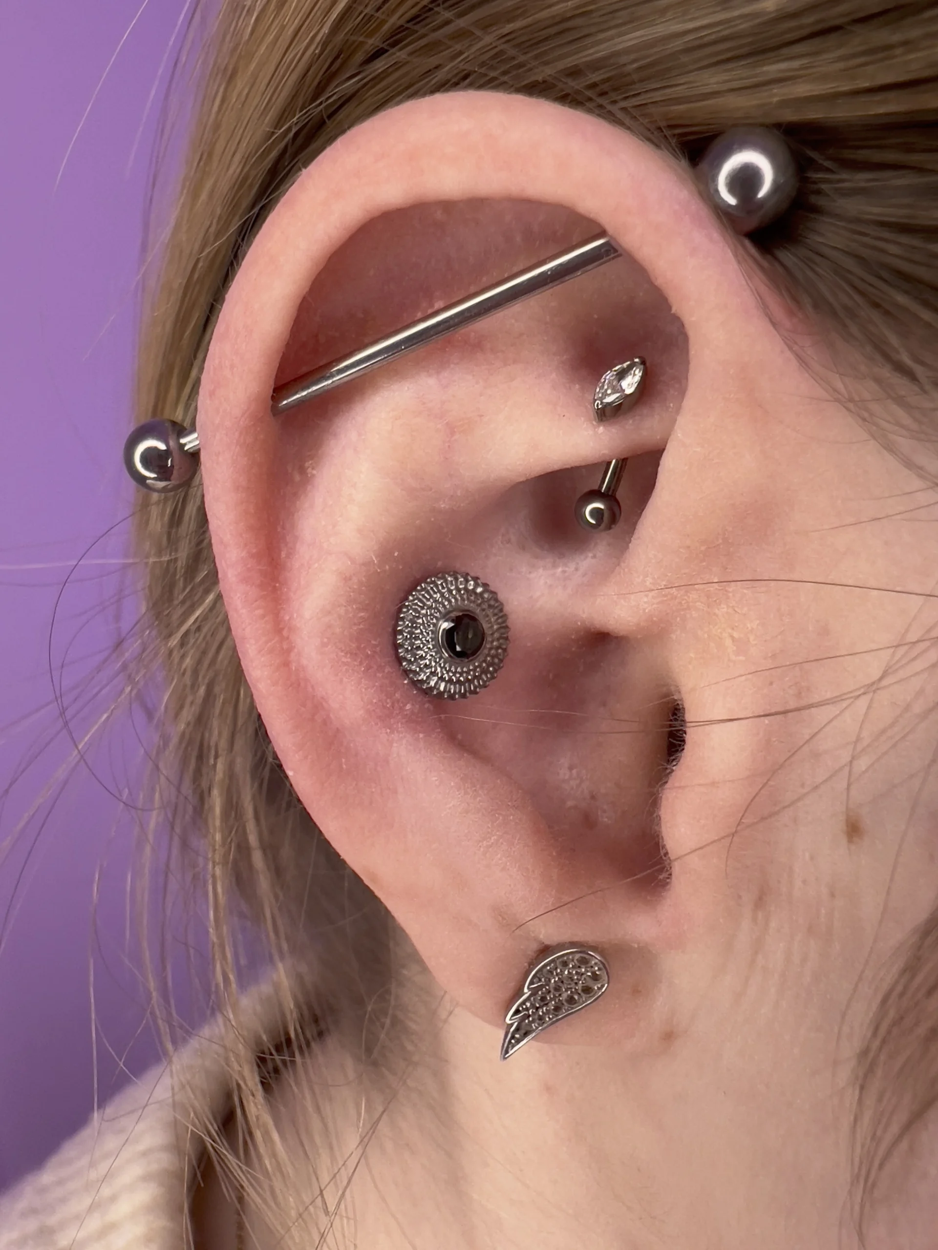 Przeglądaj galerię biżuterii tytanowej implant grade (ASTM F-136) w Angie Piercing Studio i zobacz, jak prezentuje się najbezpieczniejszy materiał do piercingu w profesjonalnych realizacjach. Tytan jest całkowicie bezniklowy, lekki i doskonale tolerowany przez skórę, dzięki czemu świetnie sprawdza się zarówno w pierwszych przekłuciach, jak i w anatomicznych kompozycjach.