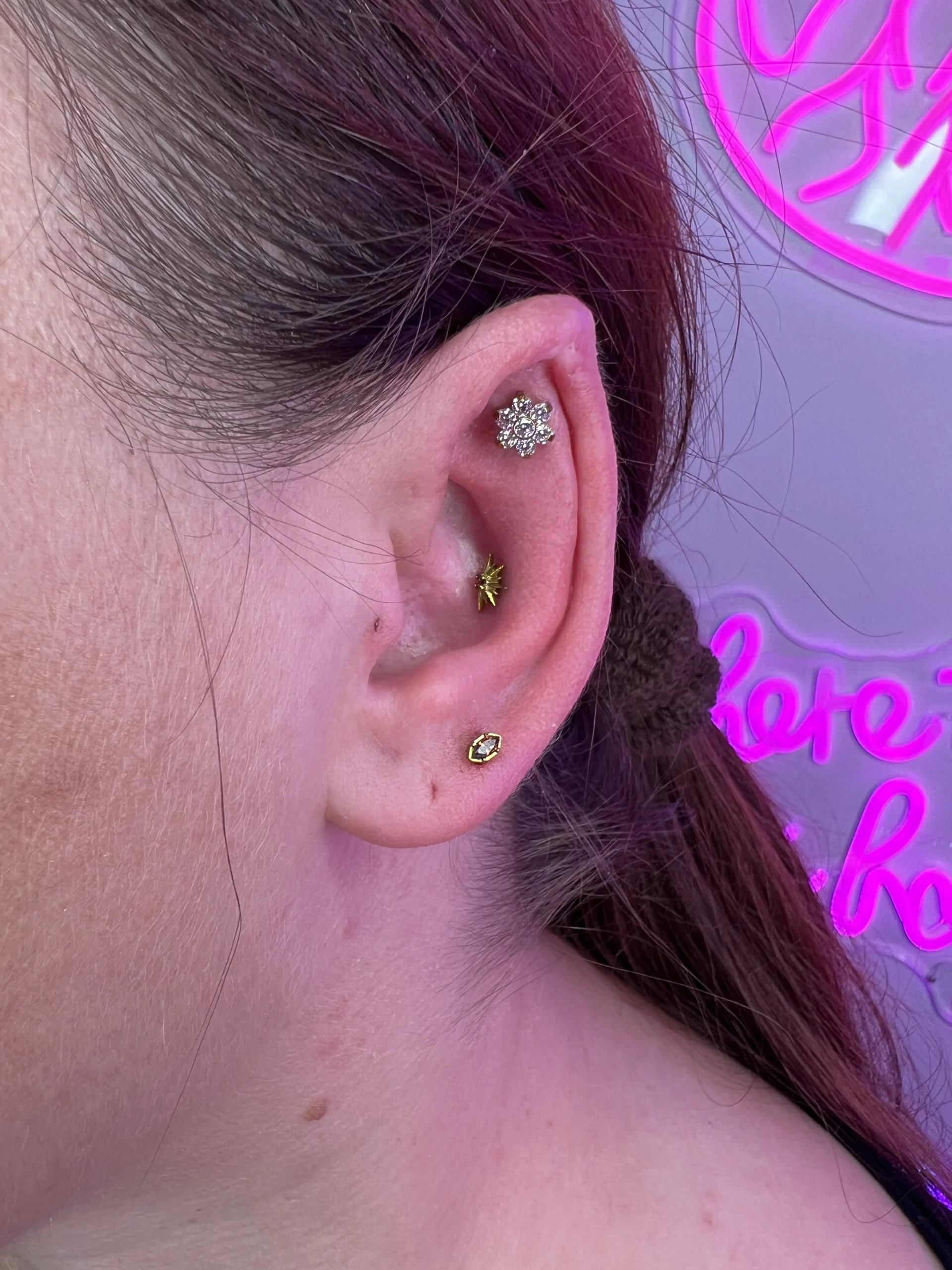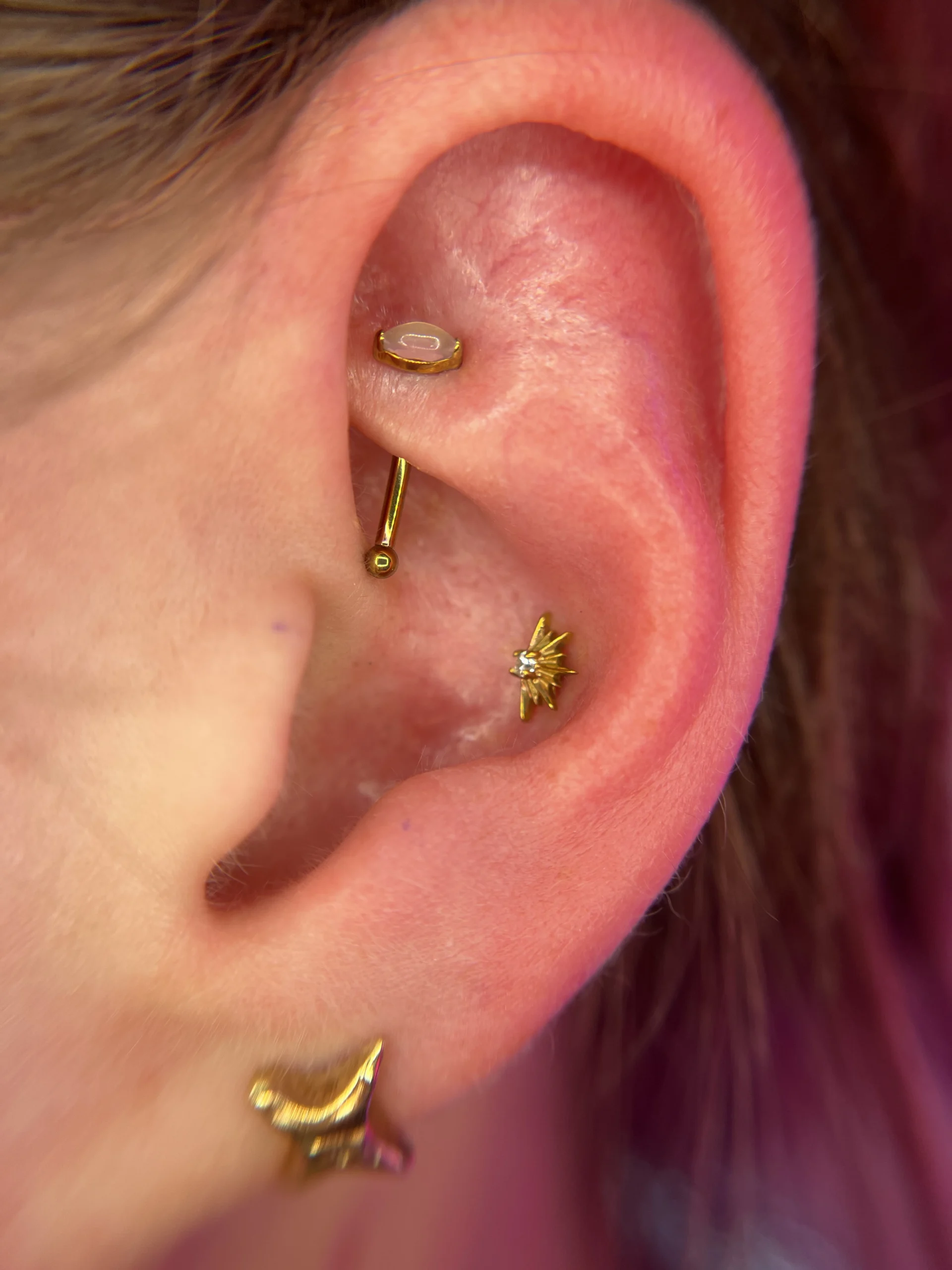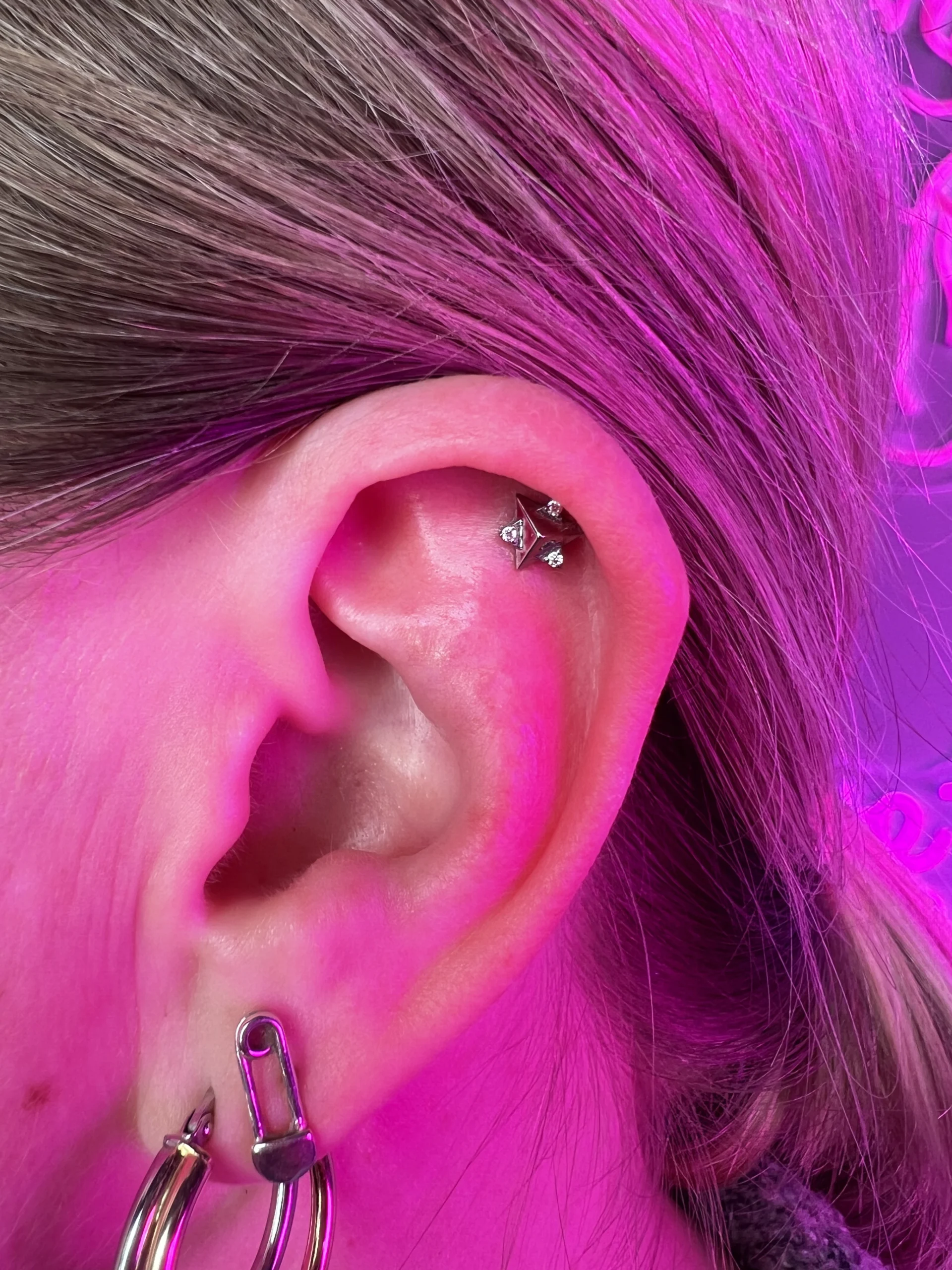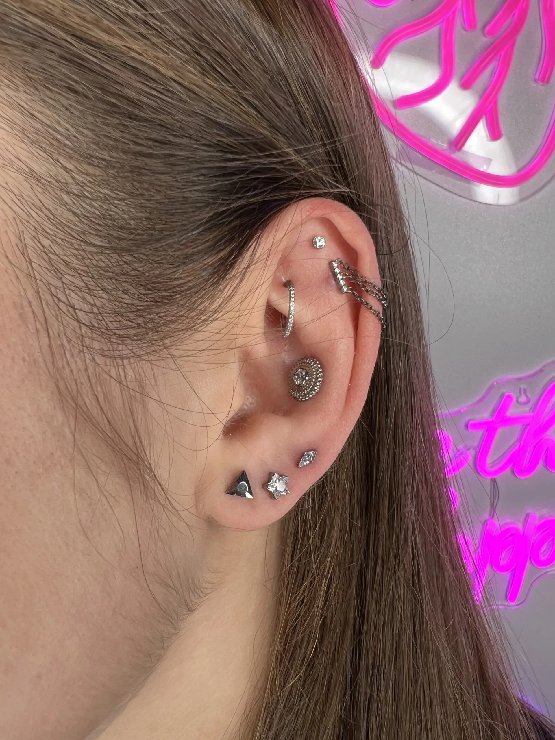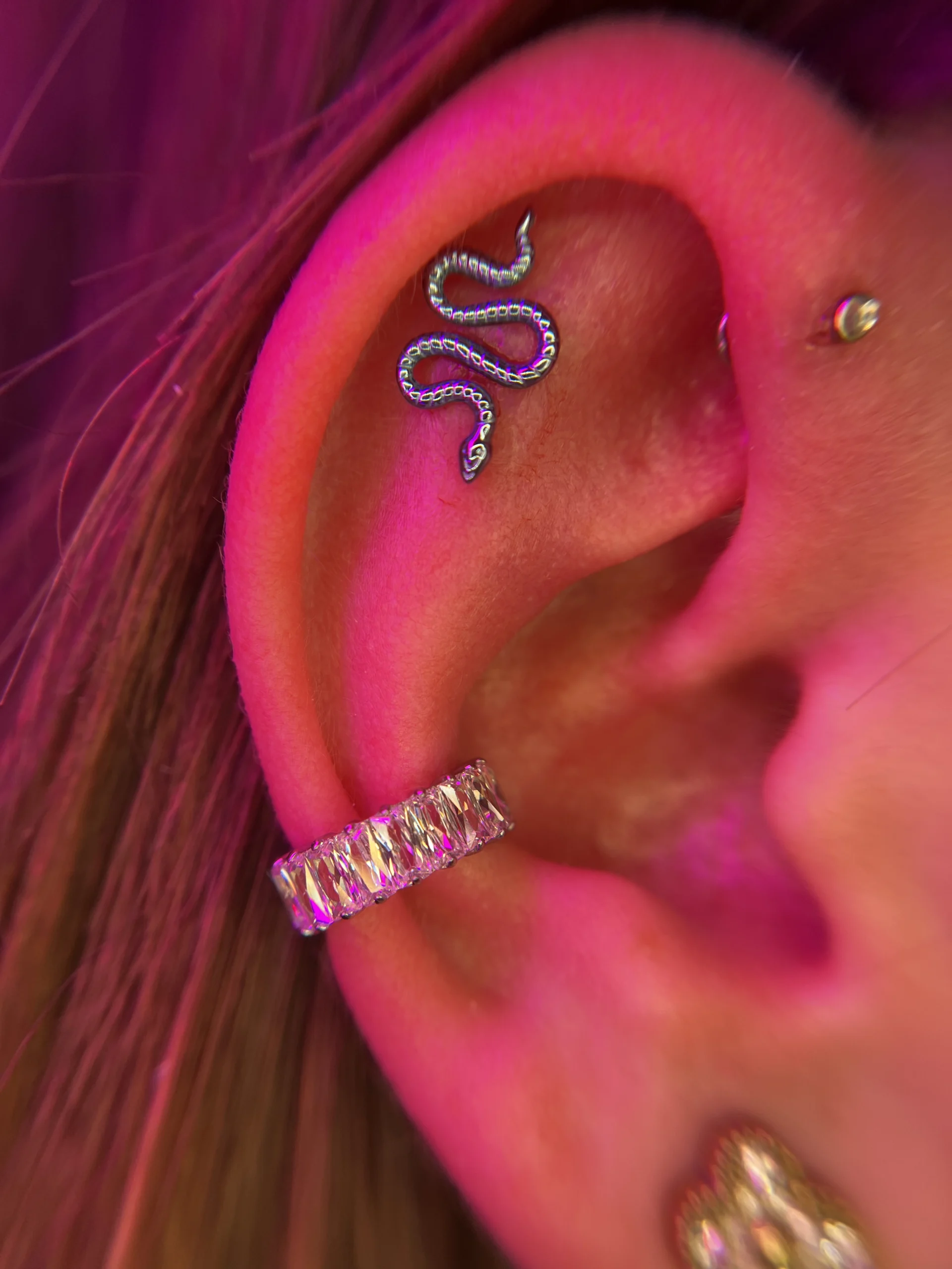 Przeglądaj galerię biżuterii tytanowej implant grade (ASTM F-136) w Angie Piercing Studio i zobacz, jak prezentuje się najbezpieczniejszy materiał do piercingu w profesjonalnych realizacjach. Tytan jest całkowicie bezniklowy, lekki i doskonale tolerowany przez skórę, dzięki czemu świetnie sprawdza się zarówno w pierwszych przekłuciach, jak i w anatomicznych kompozycjach.