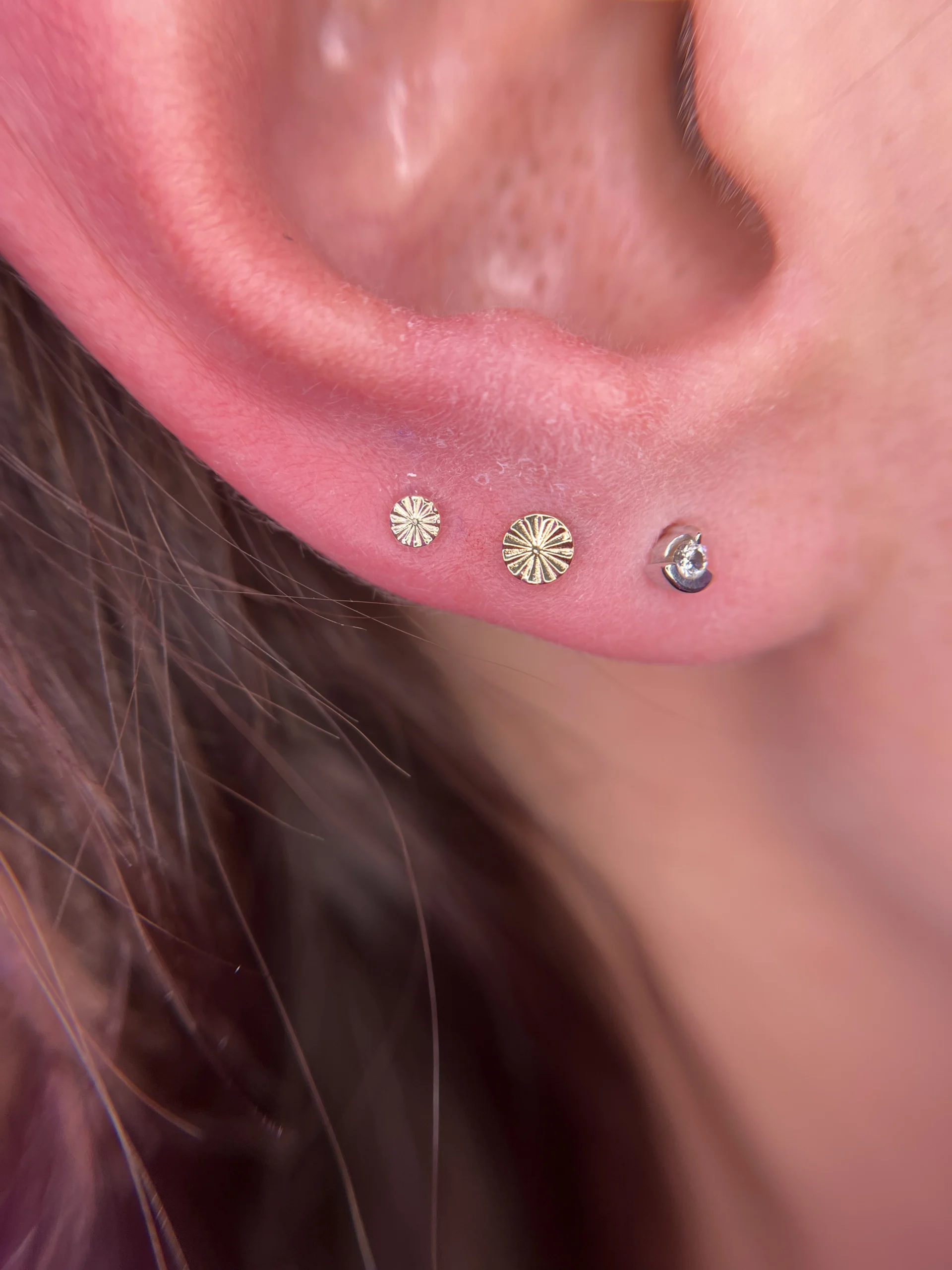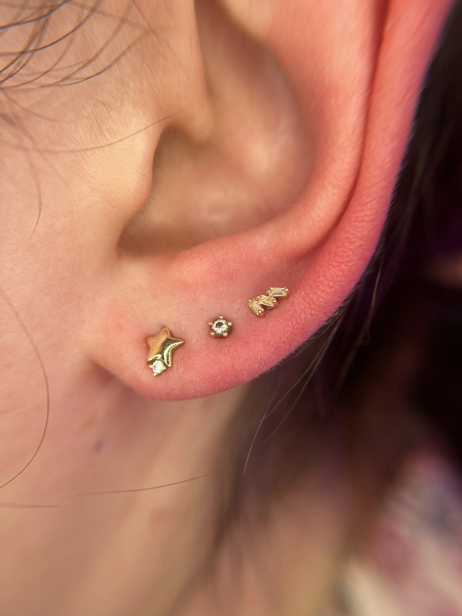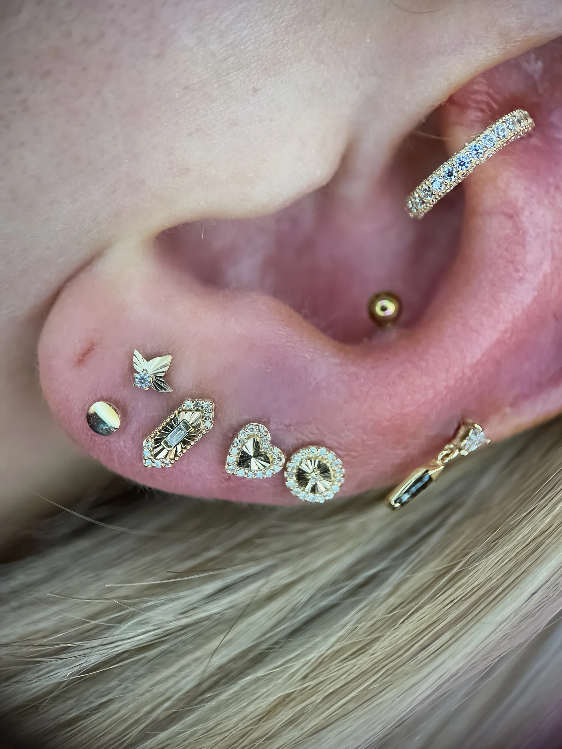 Odkryj galerię złotej biżuterii 14 i 18 karatów w Angie Piercing Studio — luksusowe, hipoalergiczne projekty, które idealnie podkreślają każdy typ przekłucia.