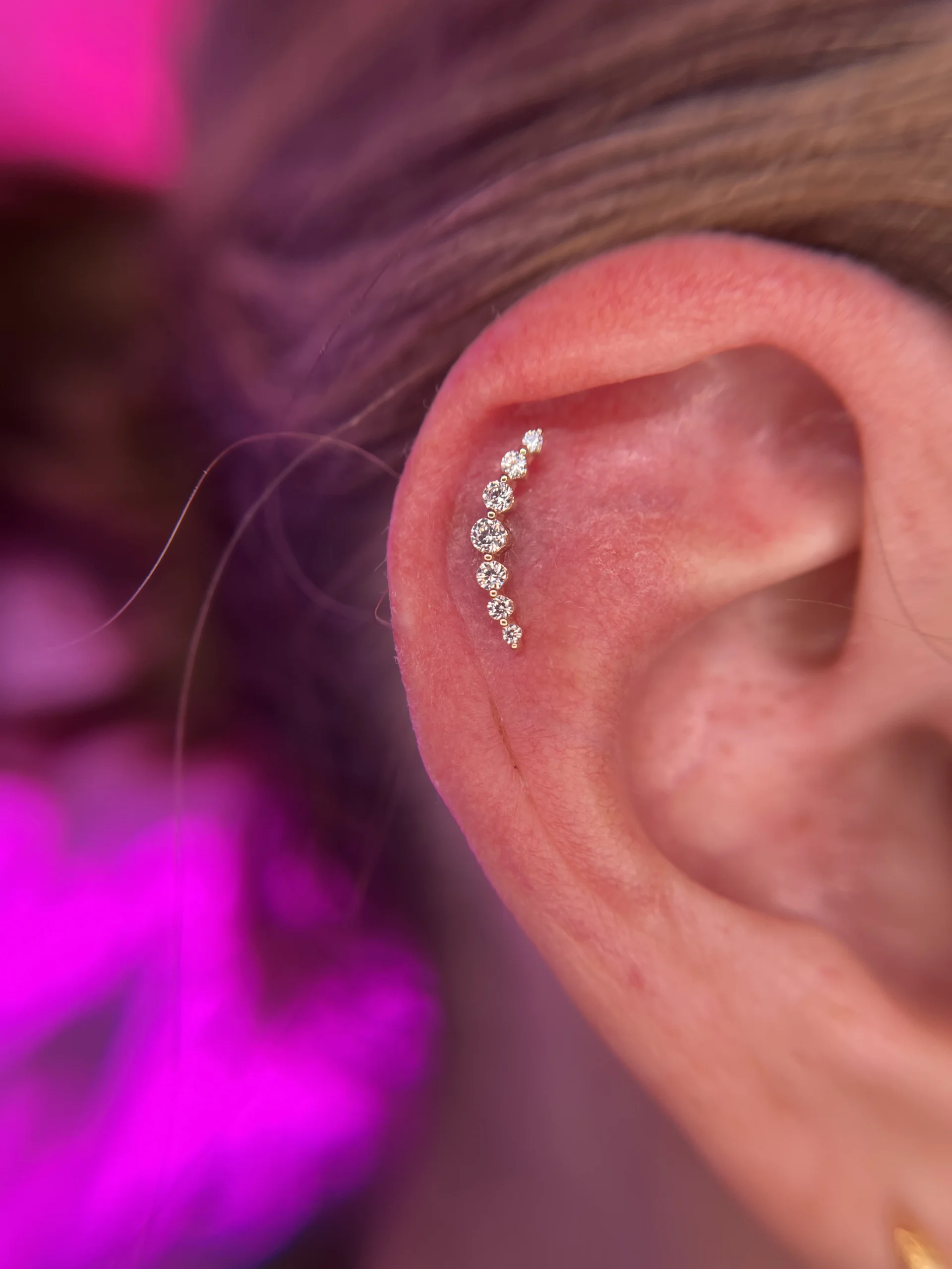 W galerii zobaczysz różnorodne projekty — od subtelnych zdobień po bardziej wyraziste konfiguracje — które pokazują, jak pięknie złoto współgra z anatomią i podkreśla charakter stylowych przekłuć.