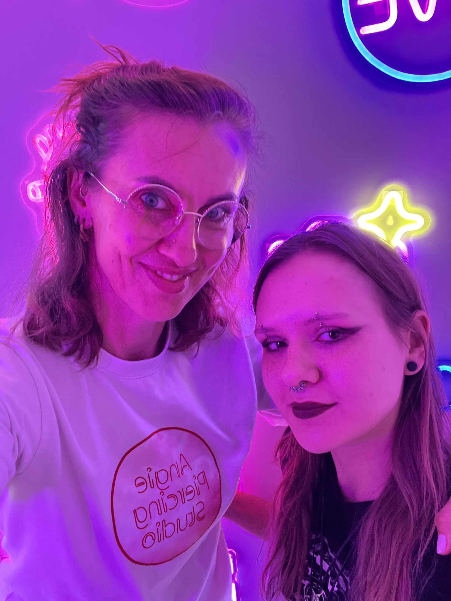 Odkryj zdjęcia z naszymi klientami w Angie Piercing Studio w Warszawie – autentyczne uśmiechy, wyjątkowe piercingi i kreatywne inspiracje.