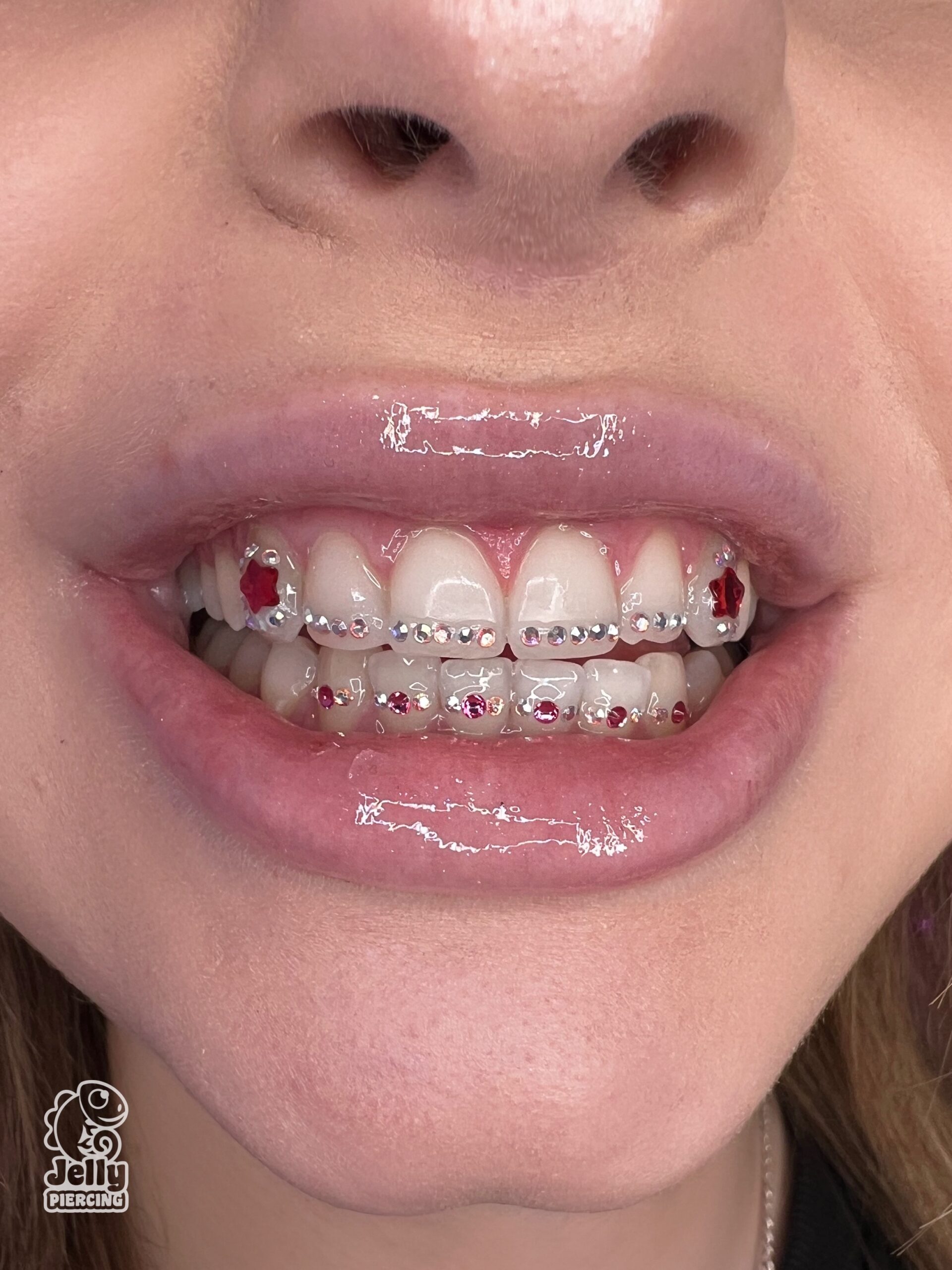 Szkolenie Tooth Gems w Angie Piercing Studio to praktyczny kurs dla osób, które chcą nauczyć się bezpiecznej i profesjonalnej aplikacji zdobień na zęby.