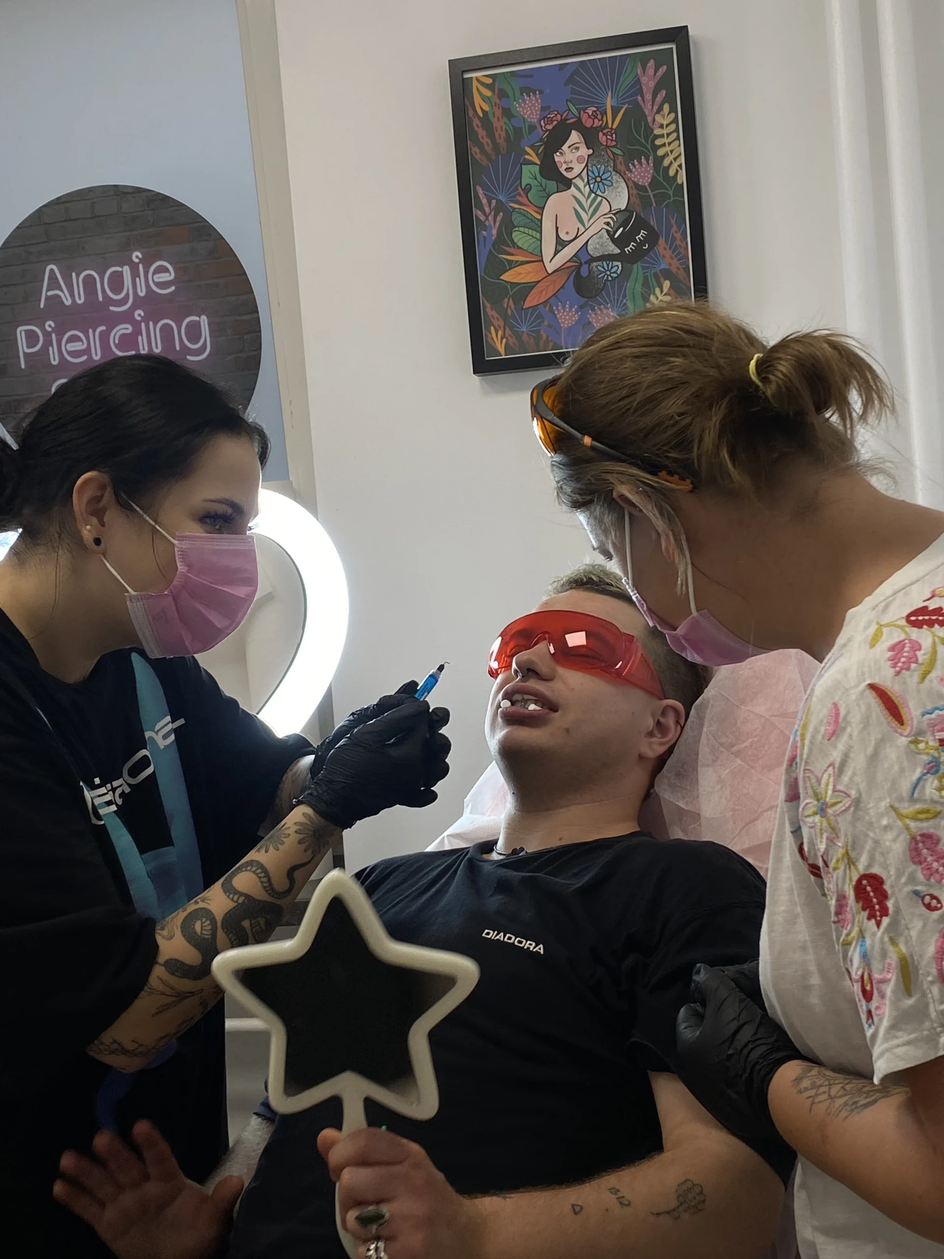 Zobacz galerię zdjęć ze szkoleń w Angie Piercing Studio w Warszawie — autentyczne ujęcia z zajęć praktycznych, pracy kursantów oraz atmosfery towarzyszącej nauce piercingu. Odkryj, jak wyglądają realne ćwiczenia, nadzór instruktora i rozwój umiejętności krok po kroku. Nasze szkolenia to intensywna, profesjonalna i inspirująca droga do zostania piercerem.
