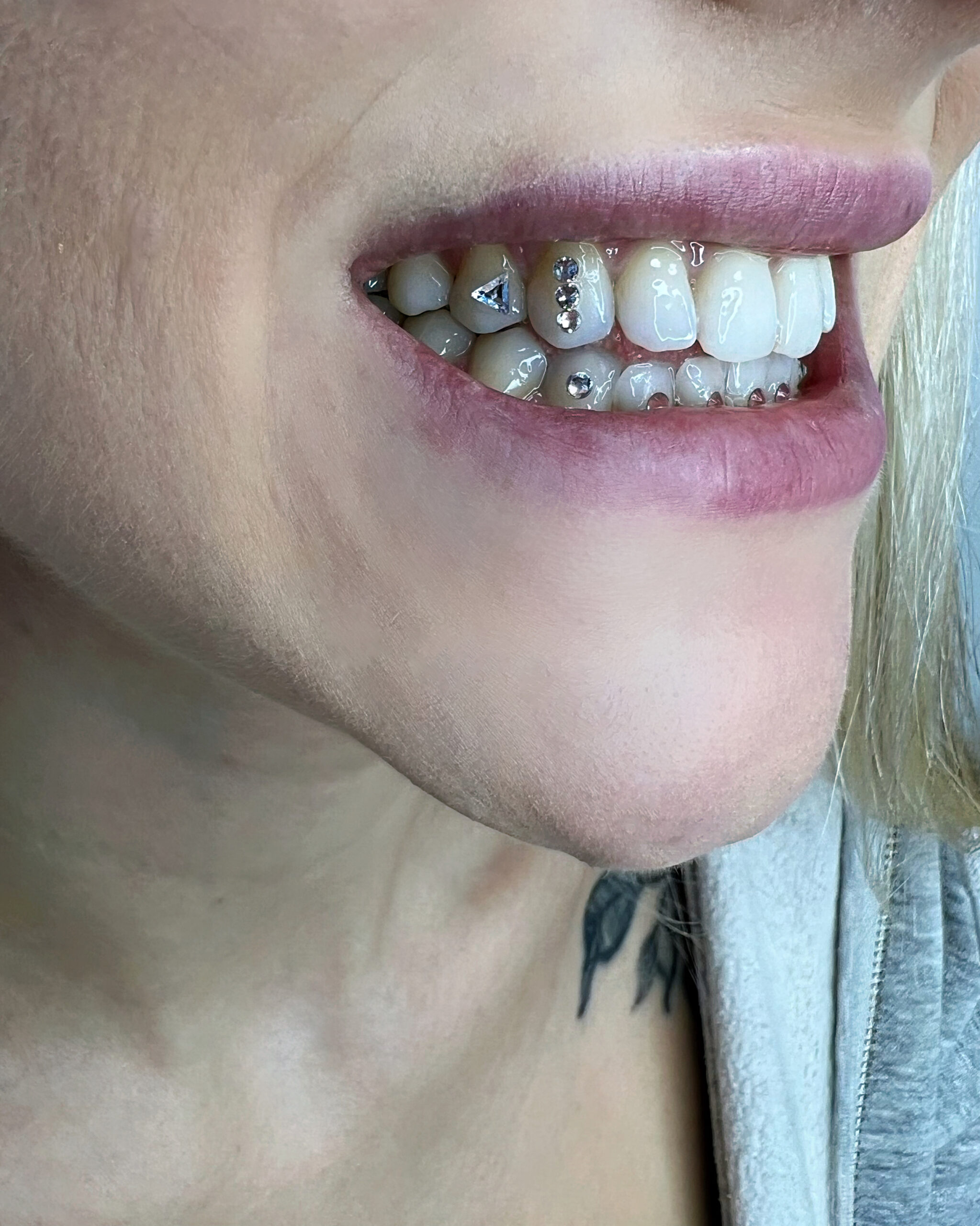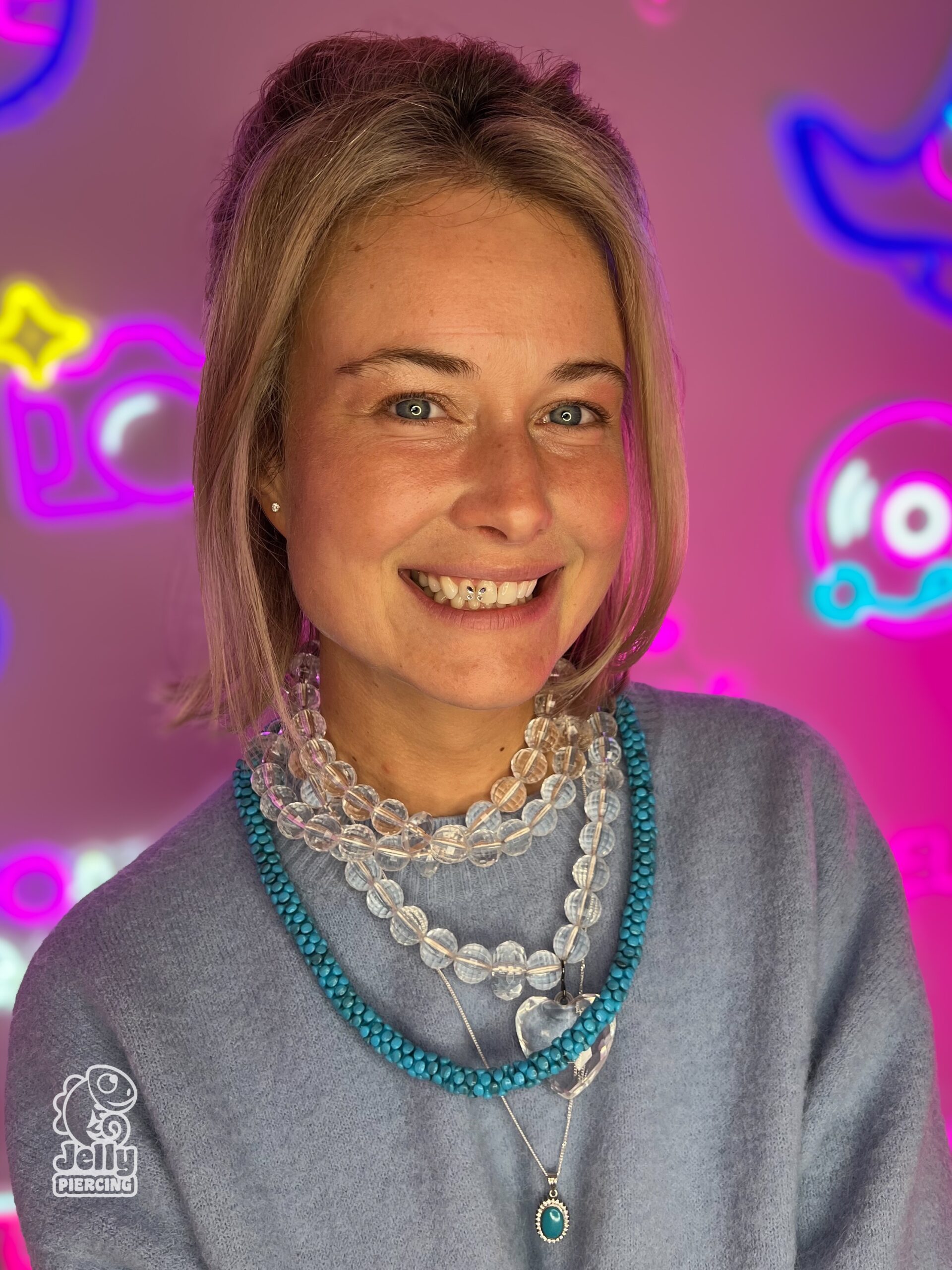 Zobacz galerię Tooth Gems w Angie Piercing Studio w Warszawie i przekonaj się, jak efektownie prezentują się nasze realizacje. Prezentujemy precyzyjne, estetyczne i trwałe ozdoby dopasowane do uśmiechu Klientów, wykonane w bezpiecznych warunkach. Galeria pokazuje profesjonalizm, indywidualne dopasowanie i efekt „wow”, który wyróżnia nasze studio jako top wybór dla Tooth Gems w Warszawie.