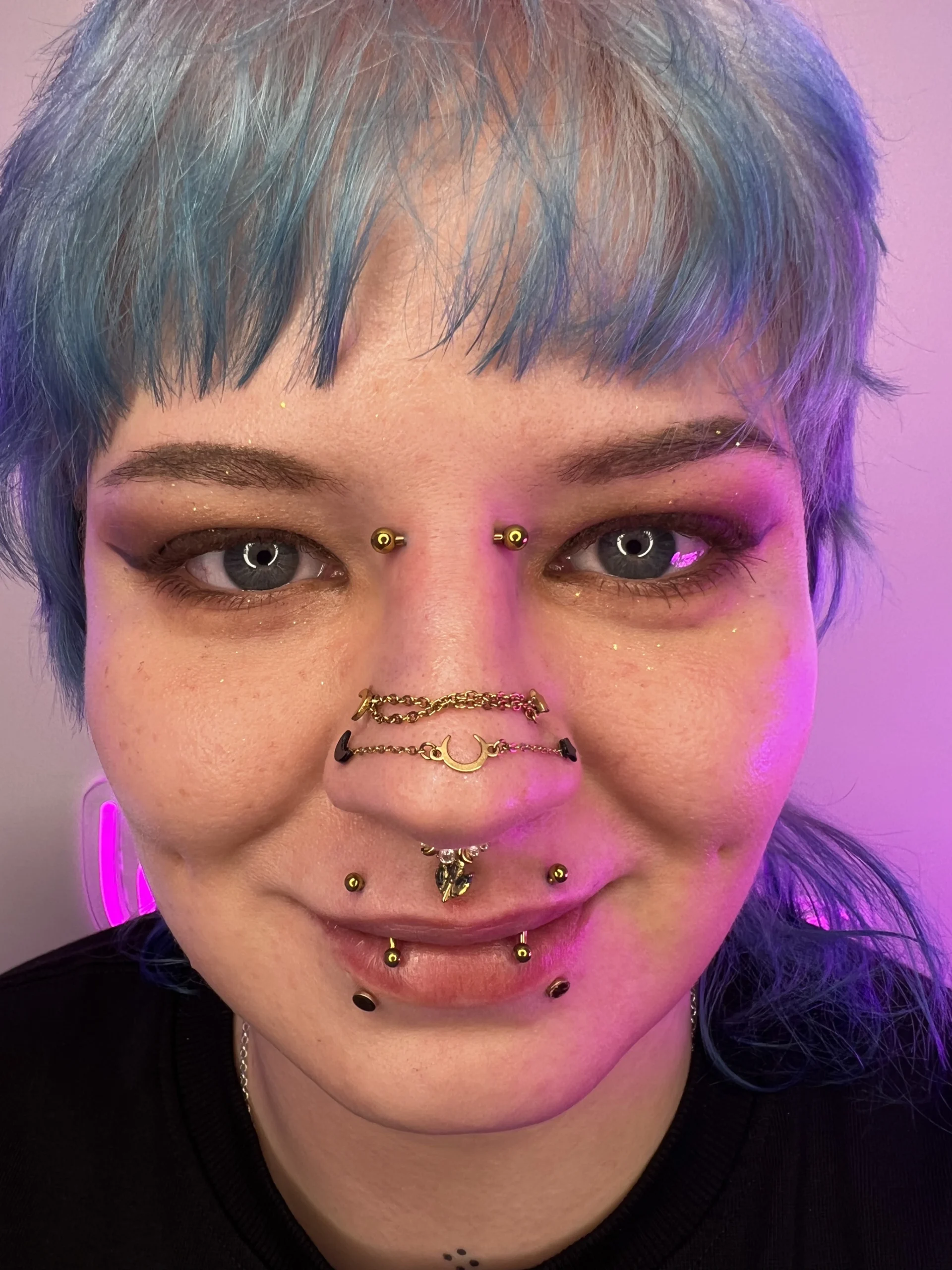 Zobacz galerię piercingu twarzy w Angie Piercing Studio w Warszawie i sprawdź, jak prezentują się realne efekty przekłuć takich jak medusa, labret, monroe, bridge czy eyebrow. Nasze zdjęcia pokazują precyzję, symetrię i naturalne dopasowanie biżuterii do anatomii twarzy, a także różnorodne style, które tworzymy dla Klientów. Idealne miejsce, aby znaleźć inspirację i upewnić się, że Twój nowy facial piercing będzie 100% slay — wykonany bezpiecznie, estetycznie i profesjonalnie.