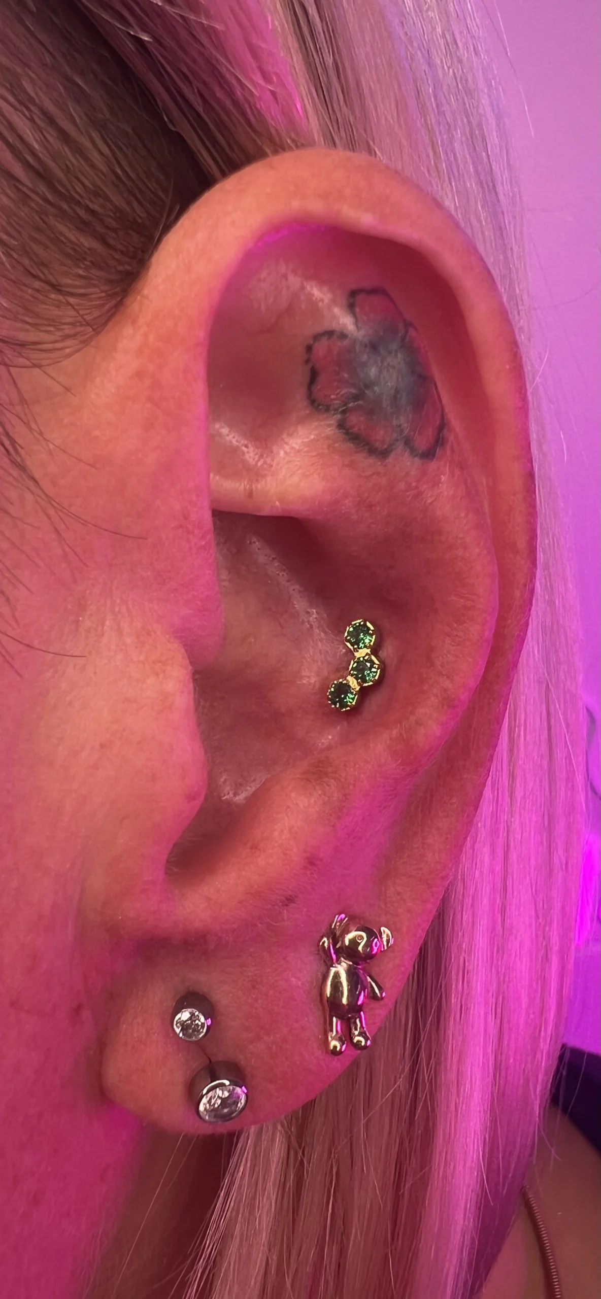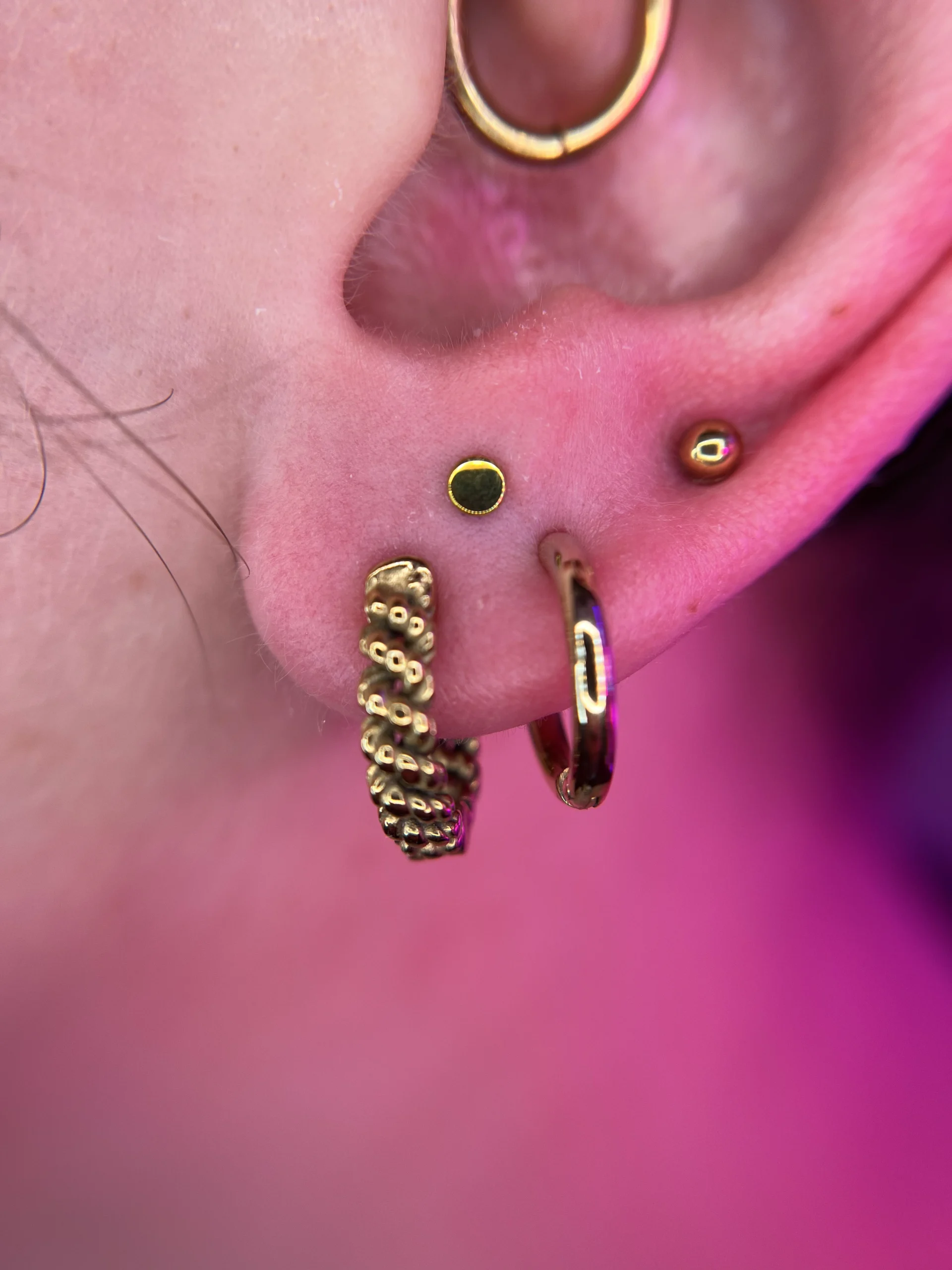 Odkryj galerię realizacji piercingu uszu w Angie Piercing Studio w Warszawie i zobacz, jak estetycznie i precyzyjnie wykonujemy przekłucia takie jak lobe, helix, tragus, conch czy flat. Nasze zdjęcia pokazują realne efekty, naturalne dopasowanie biżuterii, a także stylowe kompozycje ear styling, które tworzymy dla Klientów. Idealne miejsce, by znaleźć inspirację i upewnić się, że Twój przyszły piercing trafi w najlepsze ręce.